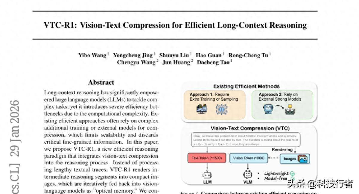 面对这个挑战,研究团队提出了一个看似天马行空却极其巧妙的解决方案:既然处理长文本这么困难,为什么不把文字变成图片呢?就像我们有时候会用思维导图或者图表来整理复杂的想法一样,研究人员开发了一套名为VTC-R1(Vision-Text Compression for Reasoning)的全新推理方法。