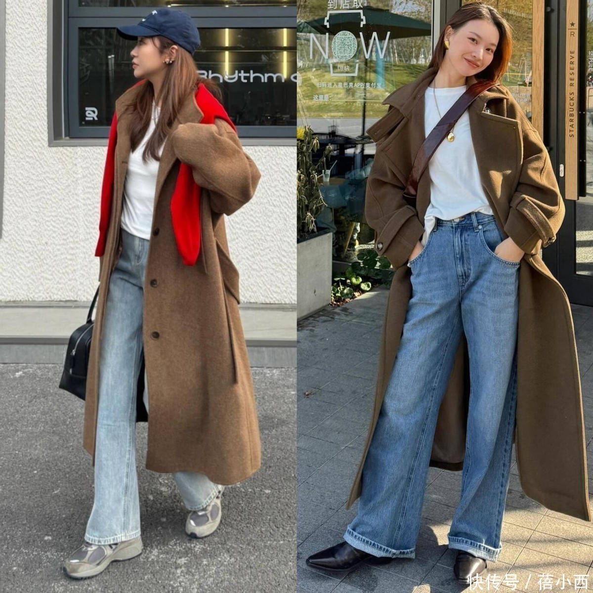 01深色大衣+牛仔裤